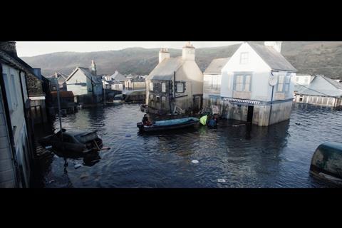 The work began with concept designs for drone shots showing the town of Morfa Halen before and after the flooding. These were developed into digital matte paintings using a lidar scan of the real town as a base, before moving into compositing where the environments were carefully integrated into the drone-shot plates.