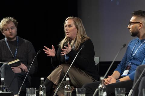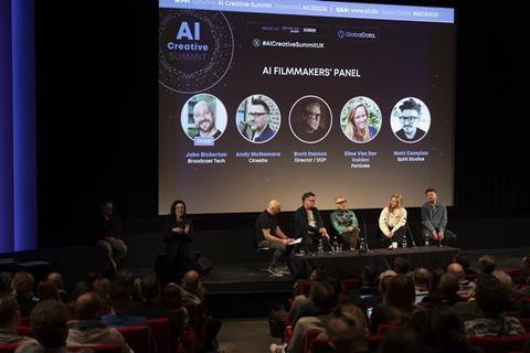Speakers at the AI Creative Summit 2025 included Theo Jones – VFX Supervisor – Framestore; Posy Brewer – Voiceover Artist; Pete Archer – Programme Director, Gen AI – BBC; Matt Campion – Founder & Creative Director – Spirit Studios; Jack Jones – Partner, Interactive and Creative Media Team – Sheridans LLP; Eline Van De Velden – Founder & CEO – Particle6; Daniel Oron – Executive Producer – Go Button Media; Brett Danton – Director & DOP; Becky Gregory-Clarke – Head of Innovation – CoSTAR National Lab and National Film & Television School; Andy McNamara – Generative AI Lead – Cinesite